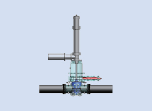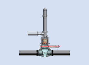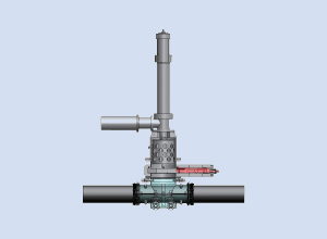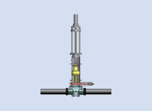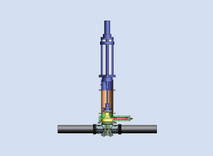 流体がガスでも対応できます。流れを止めない・圧力を下げないで管路を分岐・遮断・切り回し・バルブ設置できます。
