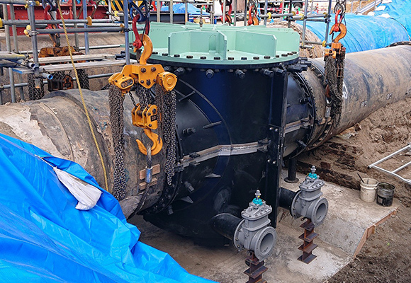 インサーバタフライ弁 φ1650・不断水特殊分岐管Cカット φ1650×φ1650