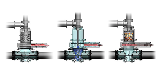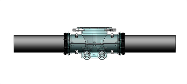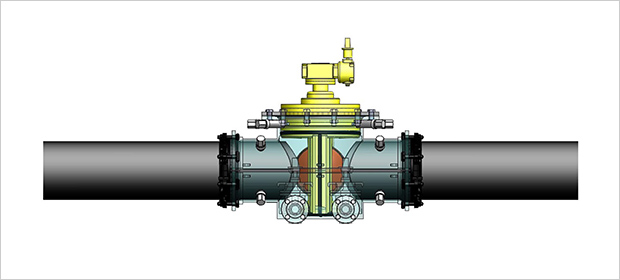 流体がガスでも対応できます。流れを止めない・圧力を下げないで管路を分岐・遮断・切り回し・バルブ設置できます。